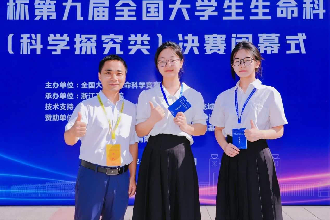 一等奖团队合影(左起:唐青海(指导老师)、刘婷、曾沛暄)