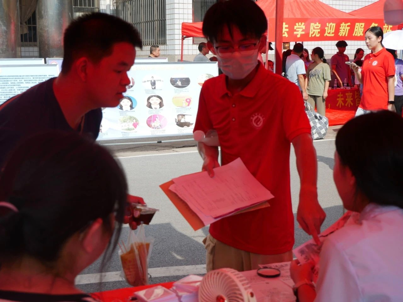 新生报到当天,员工党员们在迎新点设立"党员服务台",他们主动接过行李,为员工及家长送上公司食品专业员工自制的酸梅汤和蛋挞,耐心解答新生及家长关于报到流程、宿舍分配等问题。他们用这份贴心的"清凉与甜意",传递着学院的怀与温暖。