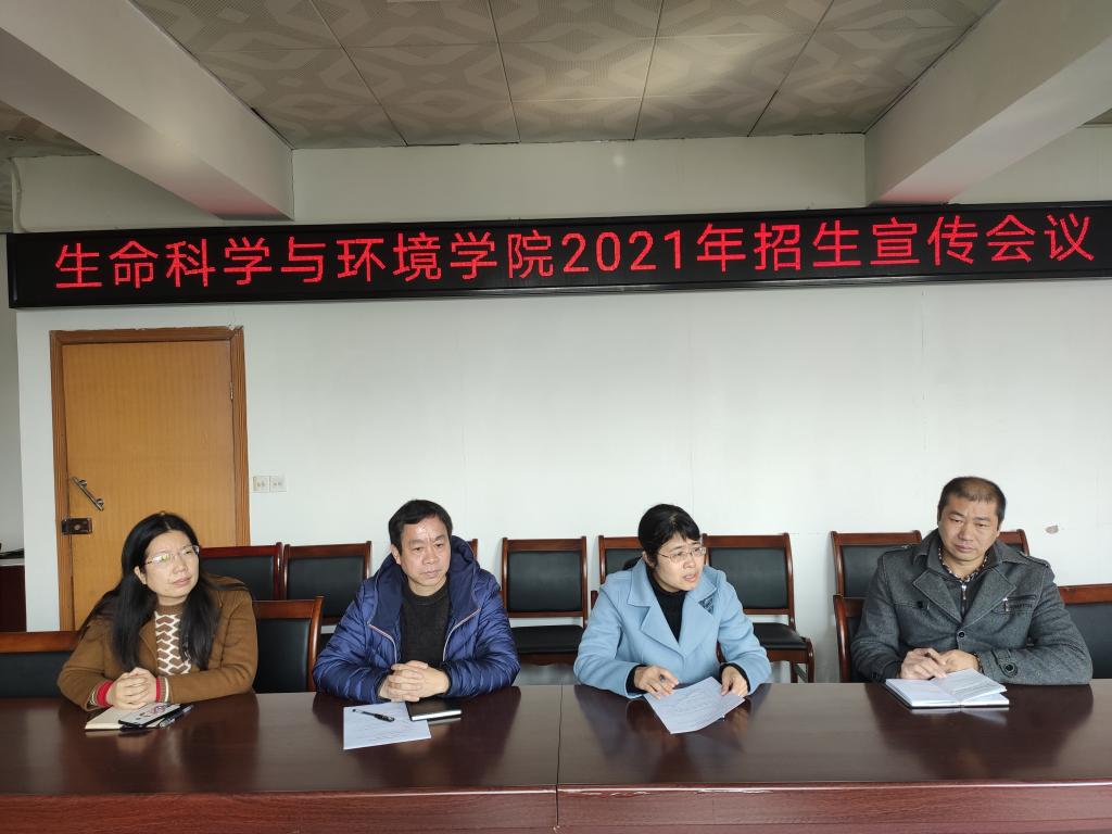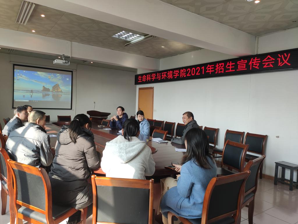 2021年是采用“3+1+2”模式的新高考元年,也是实行“学院专业组”招生的开局之年。为进一步统一思想,明确分工,降实责任,形成合力,顺利推进招生宣传工作。1月15日,生环学院在千禧楼六楼会议室召开招生宣传工作专题会议。公司党政领导、现任及上任专业负责人、实验室主任以及辅导员参加会议。会议由曹丽敏经理主持。