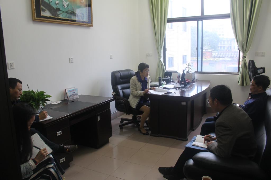 调研中,曹丽敏经理从学院团队队伍建设、科学研究工作的实际情况及学院在发展过程中存在的困难向陈书记进行了汇报,易诚副经理也就学院相关工作向陈书记进行了汇报,陈书记首先对公司教学、科研工作及领导班子团结协作给予了肯定,尤其历年来员工考研取得的优异成绩给予高度评价,并对学院领导提出的意见与建议非常重视,深切关心学院发展,陈列尊处长陪同调研。