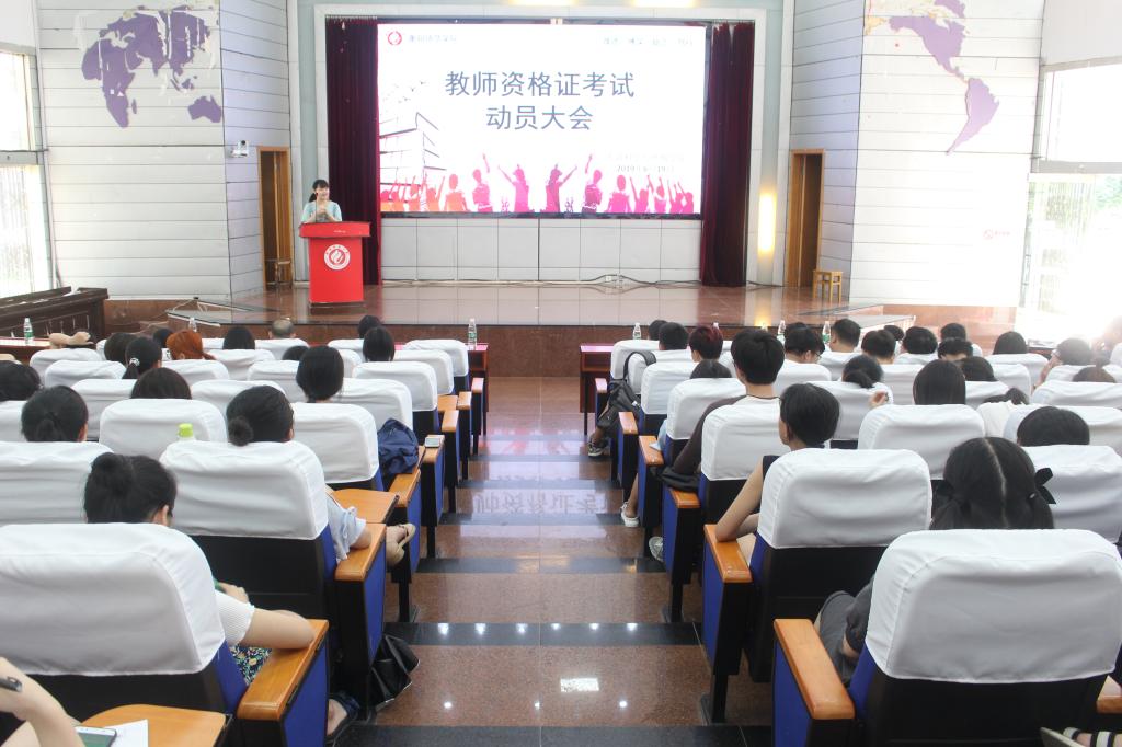 为切实做好师范生教团队格证迎考工作,督促同学们尽早进入教团队格证考试的备考状态,6月19日下午三点,公司特此召开2019年教团队格证动员大会,大会在西校区模拟法庭准时举行。党支部书记刘艳波,经理曹丽敏,副经理易诚,黄慧珍、刘健晖、滕涛、唐兴等老师出席本次会议并做动员指导。此外,还邀请到了新航道教育衡阳校区负责人谢利华先生,新航道教育教团队格证高级讲师刘捷进行了相应讲解。17级全体师范专业员工到场聆听。
