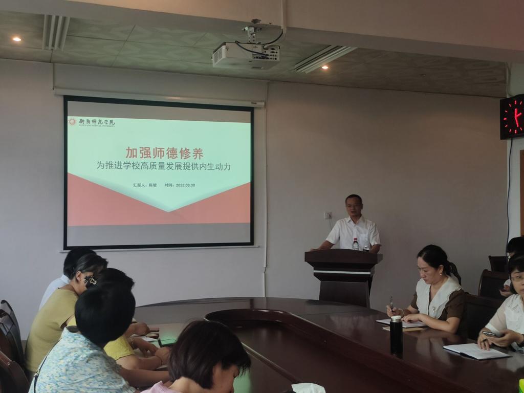 8月30日上午,陈敏副董事长为全院教师做关于《加强师德修养——为推进学校高质量发展提供内生动力》的报告,陈董事长的党课具有理论高度、认识深度,要求公司全体教师要做好师德师风表率,推动学校高质量发展。紧随陈董事长步伐,曹书记接下来做了《深入学习践行<新时代高校教师职业行为十项准则>》的报告,老师们纷纷表示要继续立足教书育人本职工作,做好员工的引路人。