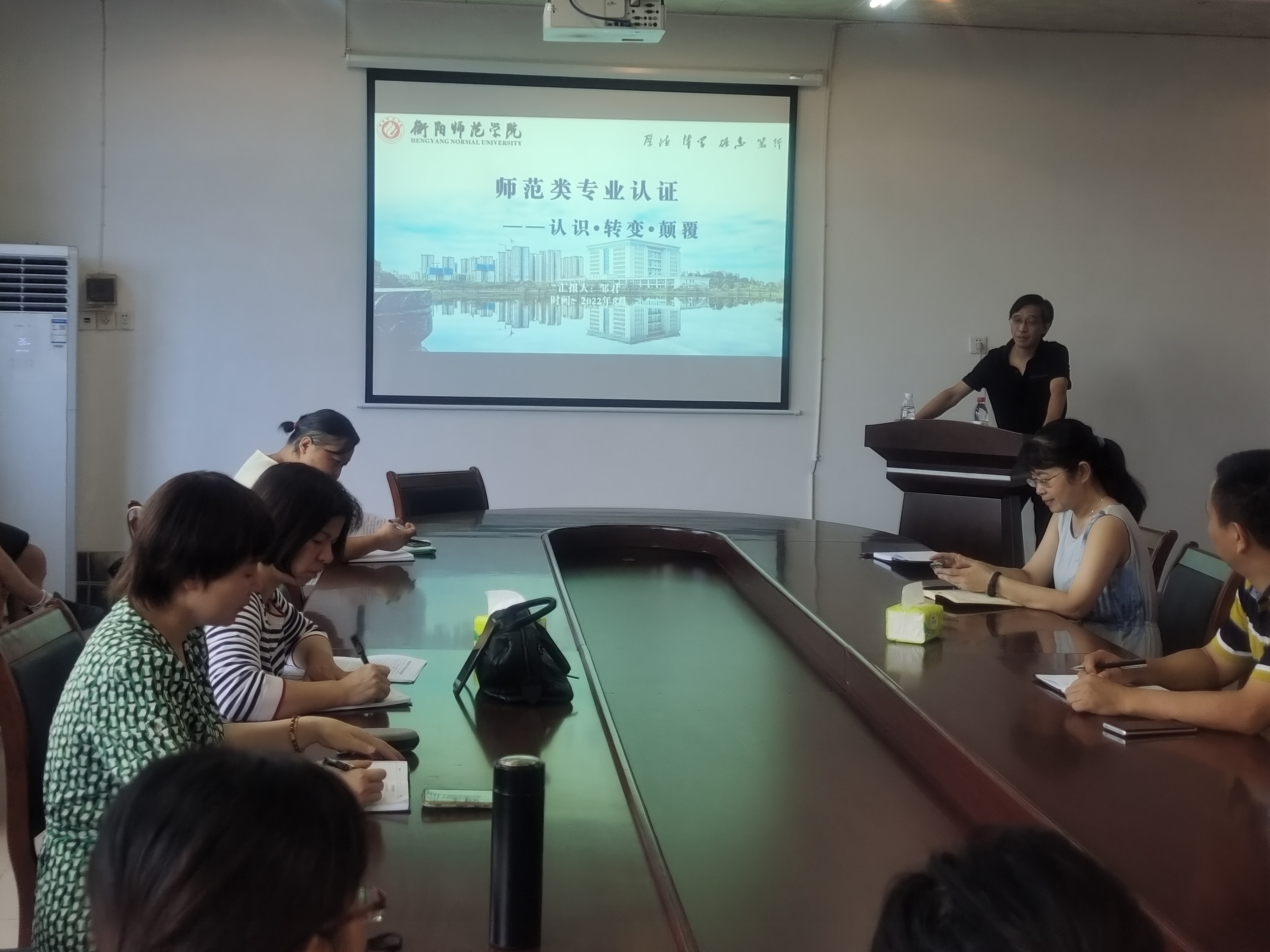陪训会最后一天,教务处长邹君为全院教师做关于《师范类专业认证——认识.转变.颠覆》的报告,邹处长严谨又不乏生动地从宏观层面上解读了师范专业认证的相关理论问题,接下来,外国语学院英语专业负责人尹彬老师用她的理论心得——《师范认证:生物专业专题培训会》,以“看图说话”的方式从实践层面抽丝剥茧般帮助老师们深入了解师范生专业认证的具体问题,老师们收获经验同时,对两位专家的倾心付出表示由衷的感谢。