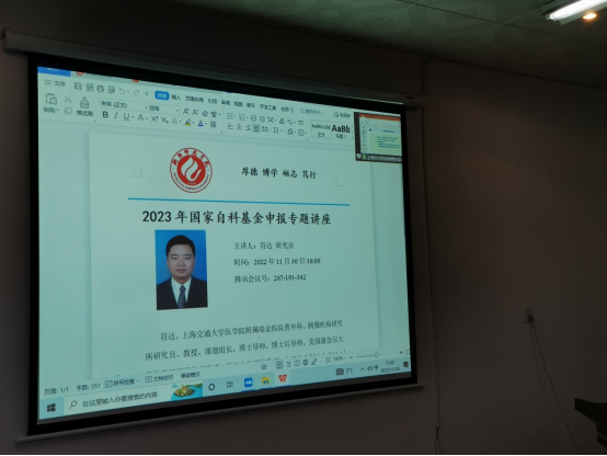 上海交通大学医学院附属瑞金医院普外科、胰腺疾病研究所符达研究员于2022年11月30日16:00通过腾讯会议的网络平台对EMC易倍教师进行了国家自科基金申报专题讲座。讲座内容涉及国家自然科学基金申报现状、申请前的准备与思路整理、基金写作的总体要求、指导与评审体会等方面。