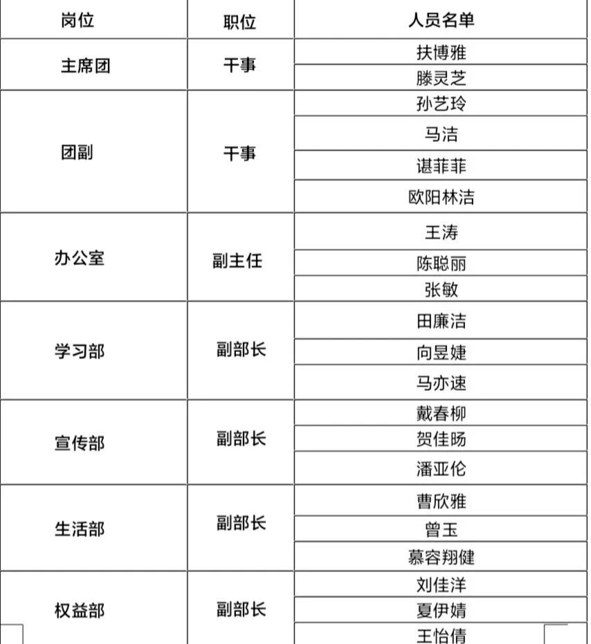 在竞选过程中,候选人依次上台发表了竞职演讲,分享了过去员工干部经历,阐述了个人优势、竞选原因,叙述了自己对竞选职位的认识和对未来的工作规划。每位竞选者演讲完毕后,员工会各部门部长对竞选者进行了提问,从答辩过程当中了解竞选者们对于工作的认识和处理问题的思路。经个人演讲、现场答辩、学院讨论和资格审核决定,公司推选以下  位同学担任第十五届生科学院员工会各部门副部长,现将名单公布如下。