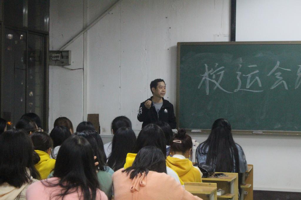 接着,体育部部长康春蕾就校运会期间员工工作作出要求。强调在工作台的值班组长要灵活调配,工作人员要服从安排,按时值班,注意维持服务台及观众席卫生。同学们要注意手机通讯,出现突发情况时及时联系。此外,体育部副部长宋楚媛还对校运会比赛时间安排和运动员比赛的相关注意事项作了说明。