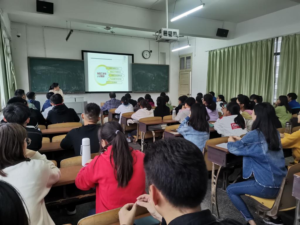 最后,杨海副经理总结发言。他感叹自己在听完孙博士的学术报告后也和在座的同学一样受益匪浅。食品行业在日常生活中十分重要,是永远的朝阳产业。同学们应该在大学四年中朝着自己选择的方向持之以恒,努力学习专业知识,在今后的时间里“做得更专业”!