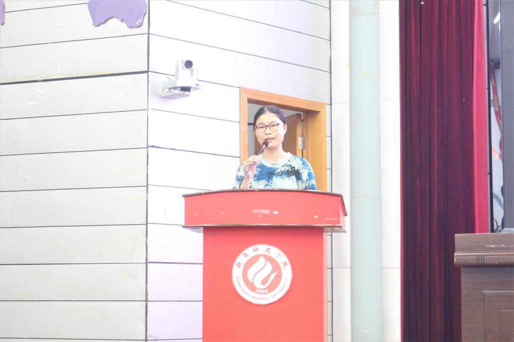 新生优秀奖学金一等奖学金获得者——来自19级生科三班的袁姗姗作为新生代表发言。她表示自己将会一如既往以认真的态度对待全新的大学,并向2019级同学们发出“严于律己,敢于创新,不负老师与家长的期望”的号召。
