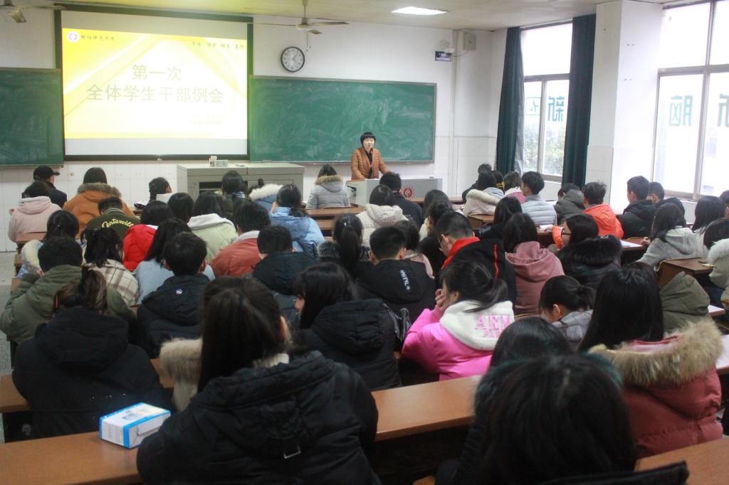 2月23日15:00,EMC易倍在西校区外语楼召开本学期第一次全体员工干部例会。党总支书记刘艳波,党总支副书记廖海华,团委书记刘树芬以及辅导员许若霏老师莅临会议,员工会全体干部以及15-18级各班班长、团支书参会,员工会主席秦永强主持会议。