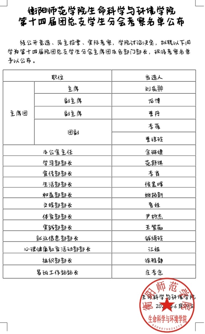 听取报告后,主持人宣布生环学院第十四届分团委员工会主席团和各部门候选人名单,以及检票,记票人名单,检票人罗佳欣上台宣誓。