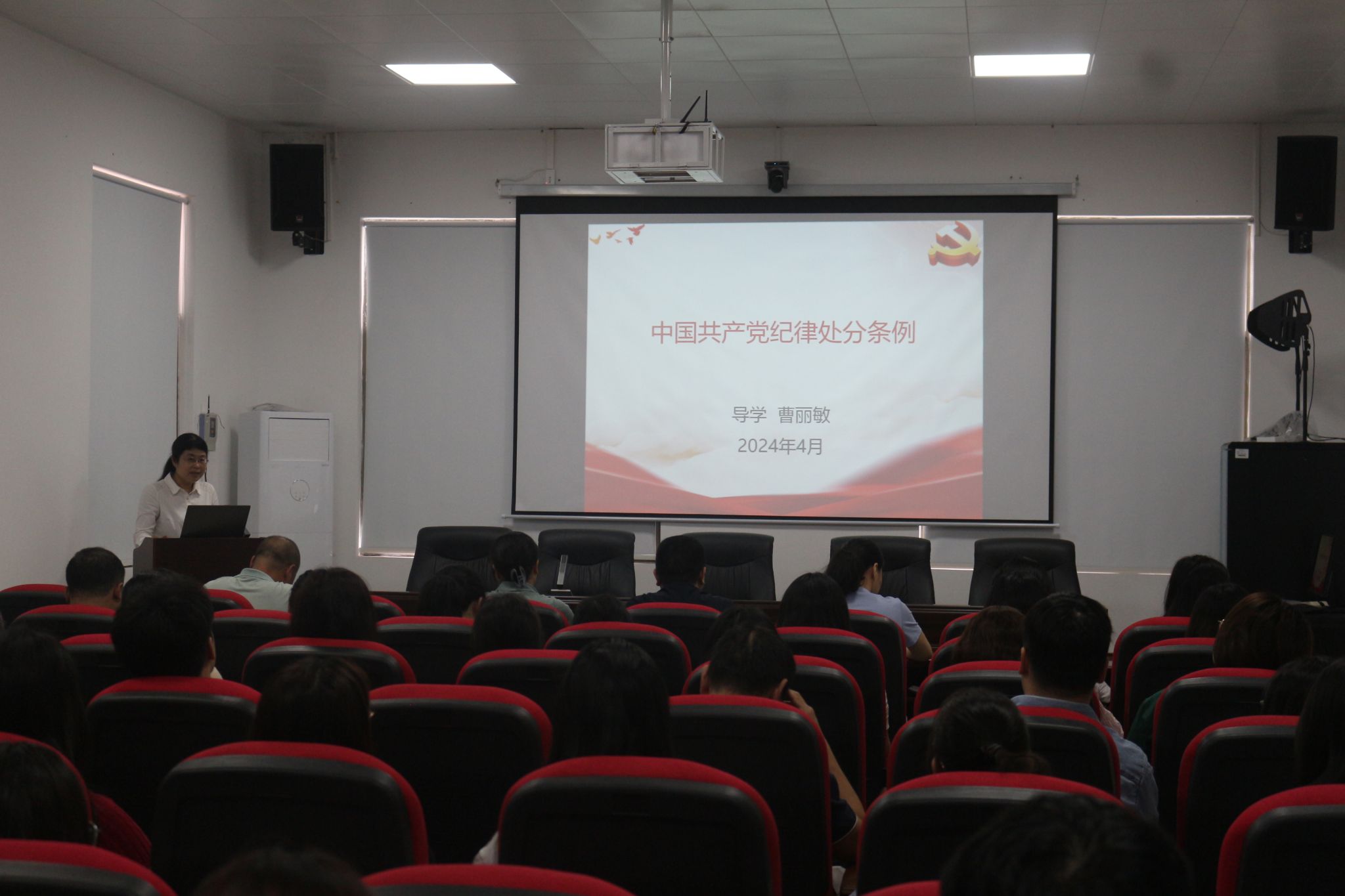 4月24日下午,生命科学公司党总支在西校区计算机楼417学术报告厅开展了党纪学习教育活动。党总支书记曹丽敏带领全体师生党员认认真真、逐章逐句学习了《中国共产党纪律处分条例》。