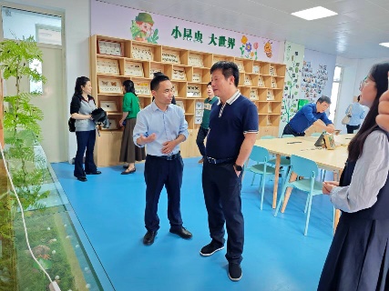 在易诚经理的陪同下,吕卓书记一行参观了湖南省重点实验室共享平台。易经理详细介绍了平台内的高端仪器设备及其在基因测序、生态保护等领域取得的标志性成果,并强调“共享平台不仅是科研创新的引擎,更是员工实践能力培养的实战基地”。随后,吕卓书记一行走进昆虫科普馆,通过沉浸式互动体验感受生物多样性魅力。在生物医药-创新实验室,重点实验室常务副主任唐青海教授阐释了“4321产教科文”的特色育人模式,即以科研课题为纽带,引导员工从理论学习向创新实践跨越。吕卓书记高度评价:“高校实验室与中学教育的深度联动,为青少年科学素养培育开辟了新路径。”