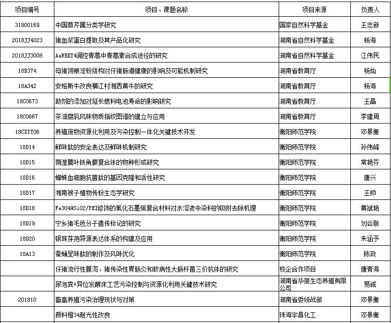 2018年立项科研项目汇总表