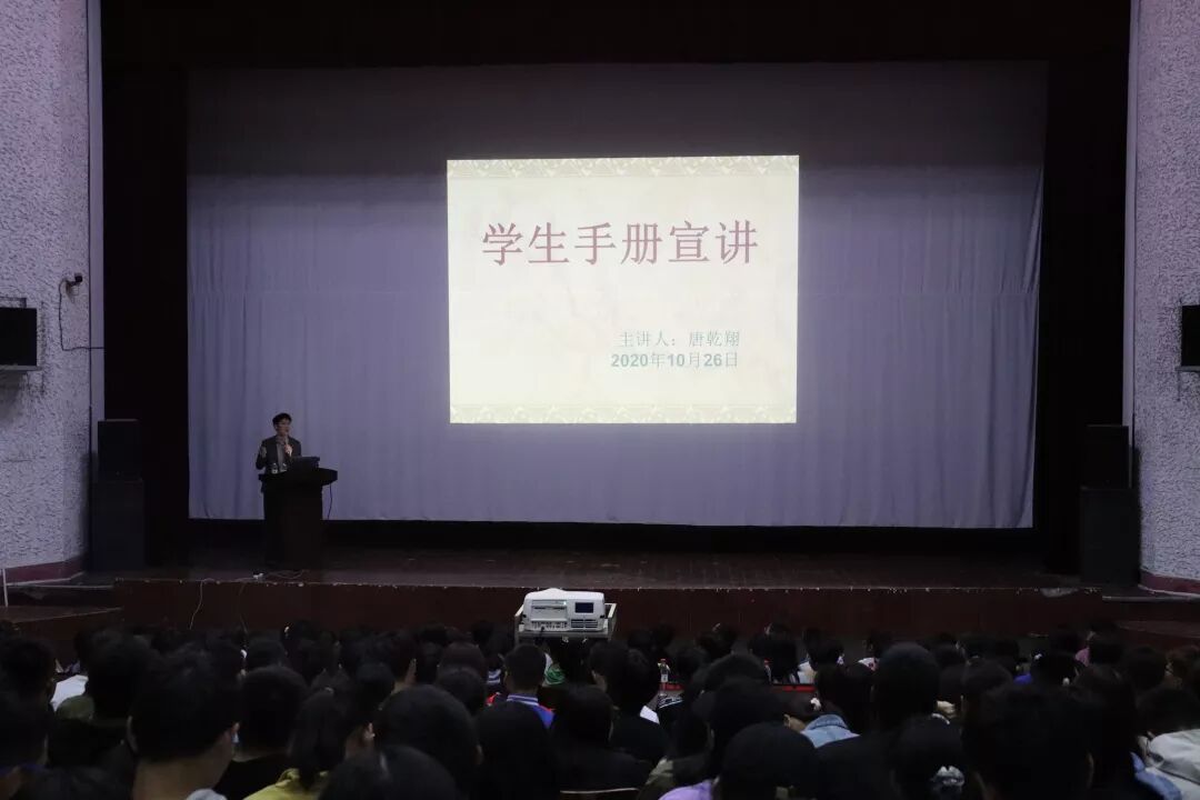 唐乾翔老师主讲《员工手册》教育讲座。他首先提出本次讲座的目的,“了解大学哪些事情该做?哪些事情不该做?”紧接着,唐老师从实践、学习、生活、奖惩四个方面带领本院员工熟悉、了解《员工手册》。老师还在讲座中特别强调了交费、请假、奖学金等方面,并指出同学们应当多看、多了解《员工手册》。现场的同学积极做笔记,对老员工活有了新的了解和规划。