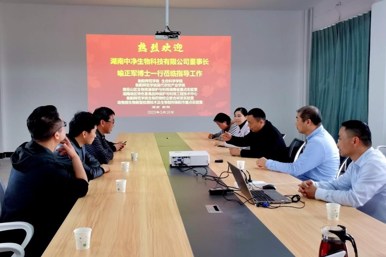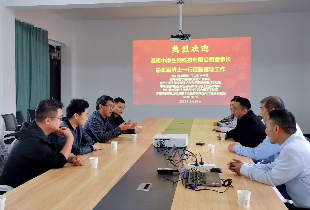易诚经理表示,喻正军博士是我们的亲密朋友、湖南中净生物科技有限公司是学院的亲密合作伙伴,十分感谢公司长期以来对学院工作的支持;前期,双方在人才培养、就业实习、技术开发等方面开展了合作,希望双方能够以现代农牧产业学院为平台,抓住现代农牧产业发展契机,继续拓展院企合作形式、提升合作的质量,深度推进“产教研用”融合发展。