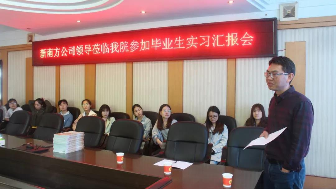 5月10日上午9点30分,新南方公司董事长喻正军博士一行于西校区行政办公楼308会议室参加了公司毕业生实习汇报会。来自公司的五位实习生返校,生命科学与环境公司党总支书记刘艳波、经理曹丽敏,副经理易诚、杨海以及部分员工代表参加了汇报会。
