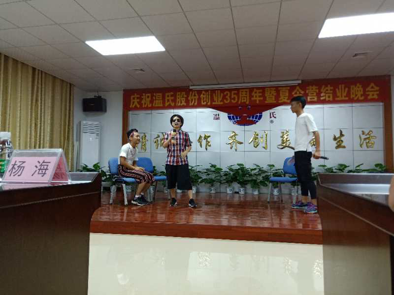 活动期间,大到夏令营的活动设计,小到课后的零食水果,处处都体现了温氏人的热情好客、团队精神与职业素养。为锻炼老员工独立自主和团队精神,举办方特意设计了一系列的闯关活动,如阳朔西街义卖、帮人拍照、自挣零花钱、一起过铁环等,受到老员工的喜欢。庆祝晚会上,营员们用他们甜美的歌声、幽默风趣的小品向温氏展示了当代老员工的风采。公司陈露、陈雯同学主演的小品《百万相亲记》以及刘文芳同学反串的《新婚访谈》将晚会推向高潮,给公司领导和兄弟院校师生留下了深刻印象和美好回忆。