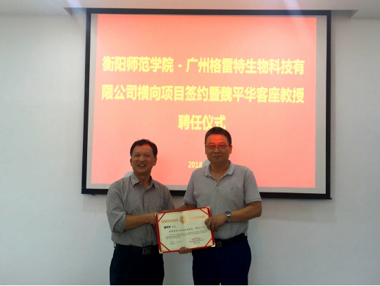郑金华副董事长首先代表学校对魏平华先生的到来表示热烈欢迎,详细介绍了EMC易倍官网的发展历程和未来的规划,并强调服务社会与企业发展是学校的一项重要任务,校企合作是加快高效科技成果转化的一条重要途径,希望双方的合作硕果累累。在友好的氛围中,郑金华副董事长与魏平华先生共同签署了《EMC易倍官网与广州格雷特生物科技有限公司技术开发合同》。随后陈列尊处长介绍了魏平华先生的学术科研成就及其创业经历与业绩,正式宣布聘任魏平华先生担任公司客座教授,郑金华副董事长为魏平华先生颁发了聘书。