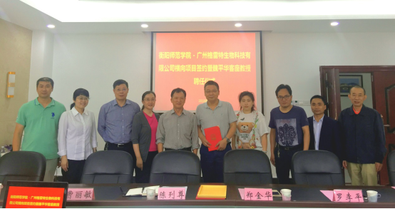 2018年6月1日下午,EMC易倍官网与广州格雷特生物科技有限公司校企合作项目签约暨魏平华先生客座教授聘任仪式在东校区学术交流中心举行。广州格雷特生物科技有限公司董事长兼总经理魏平华先生、总经办主任练玲女士、研发部张抒女士,以及公司副董事长郑金华教授、人事处处长陈列尊、科技处处长罗李平、生命科学与环境公司党总支书记刘艳波、经理曹丽敏、副经理易诚、副经理杨海以及唐青海博士出席签约仪式,仪式由罗李平处长主持。