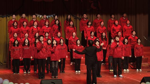 《紫荆花盛开》的旋律响起,它象征着团结与希望。合唱的歌声是那么美妙,那么婉转,仿佛天籁之音,能够打动每一个人的心灵。在紫荆花的芬芳中,我们送别过去,迎接未来。