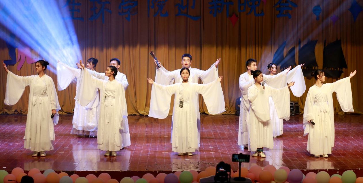 晚会由“致青春:丹心向阳,致经典:国学飘香,致梦想:君子盛德”三个篇章组成,以古典舞、诗词朗诵、汉服、旗袍T台秀等多种艺术形式呈现,古风韵味的节目带领师生领略国潮经典,感受国学的魅力,为观众带来了赏心悦目的传统文化体验。现场书法表演与国风歌曲结合演绎《将相和》,古典文化与现代潮流互相碰撞、巧妙融合,笔生烟云尽得文采风流;诗文朗诵《弟子规》、《将进酒》,书声琅琅、余音绕梁,与诗会友、共诵经典。古典舞《扇舞丹青》婀娜多姿、仙气袅袅;还有《水墨兰亭》中的古装文化展示,襦裙广袖,仙气飘渺,仪态优雅,国色芳华。