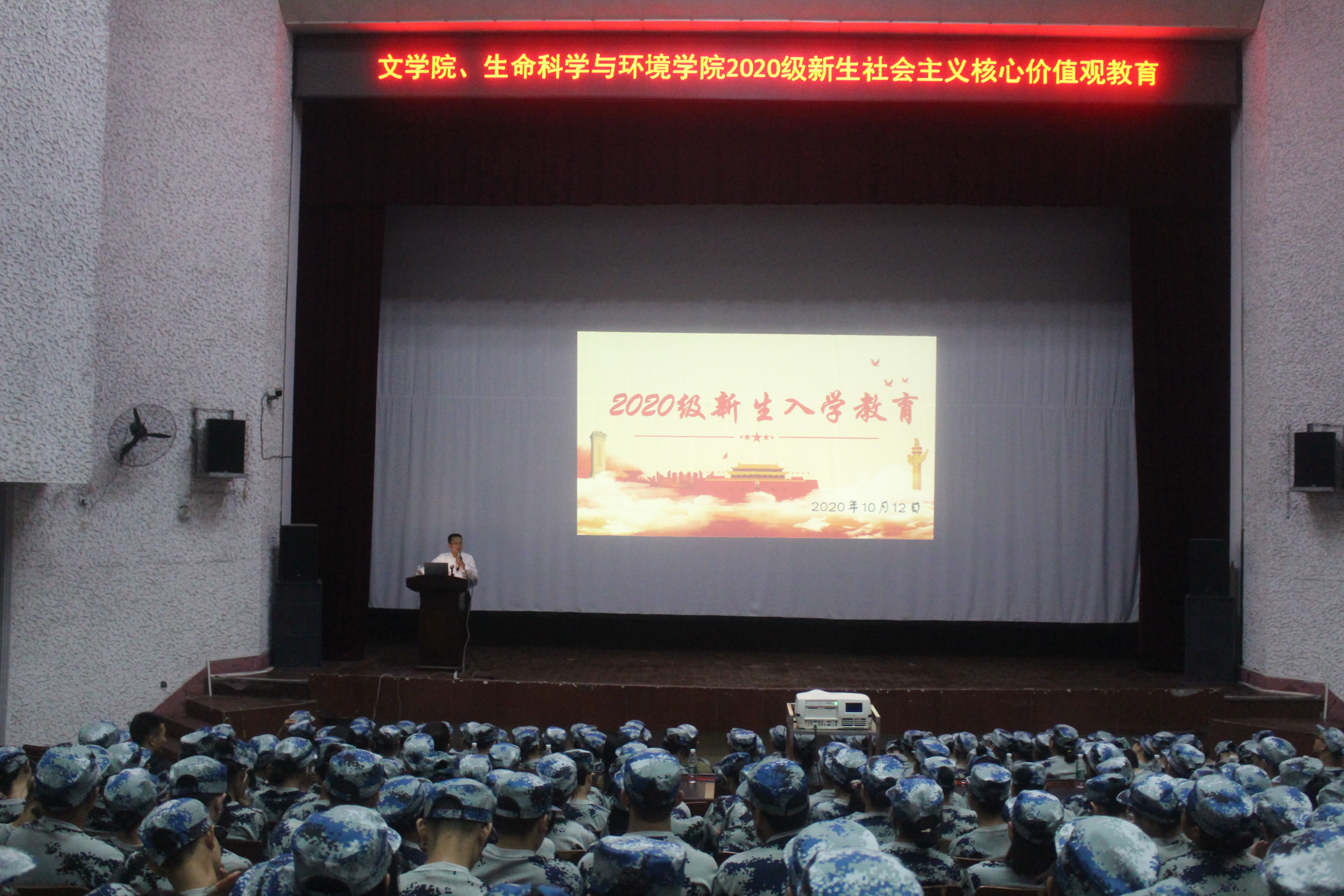 为增强员工对社会主义核心价值观的理解,加强员工思想道德建设,公司与文学院于10月12日晚七点在排演厅展开了2020级新生社会主义核心价值观教育,公司党总支书记彭晖、党总支副书记蒋湘祁、文公司党总支书记张云峰、党总支副书记何颖,以及双方学院的辅导员老师莅临本次会议。会议由彭晖书记主持,员工工作处处长蒋杰为主讲人。