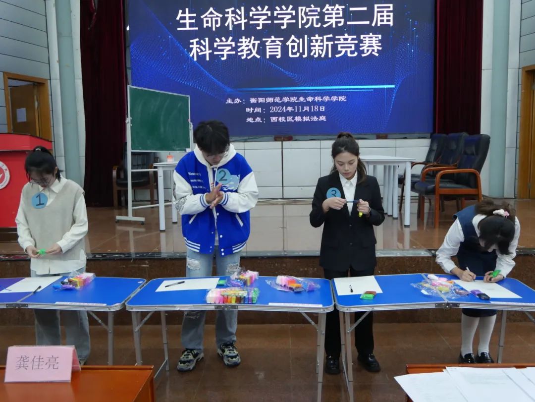 在教学创新环节,参赛的四位同学将通过实验操作、即席演讲和模拟授课两个单项目,表达自己对创新教育的理解,展现自己的实操能力和实践教学能力。在实验操作单项中,四人同时进行实验操作,本次操作项目为利用彩色橡皮泥在卡纸上制作动物细胞和植物细胞模型的显微结构。在即席演讲和模拟授课单项中,参赛员工通过PPT课件展示、个人演说、板书思维导图等教学方式,为我们带来了全新的课程体验。同学们将我们从已知的生活经历拉入未知的知识殿堂,自然的过渡使教育课堂引人入胜,激发无限的探知欲。
