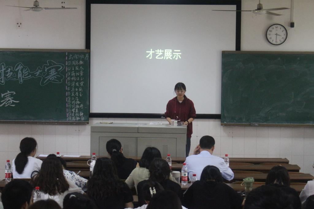 本次师范生技能大赛共分为两个阶段,第一阶段,5月7日晚参赛选手们集中进行决赛的前期准备,第二阶段共分为四个环节,分别是:教育问答,即兴演讲,才艺展示,片段教学四个部分。