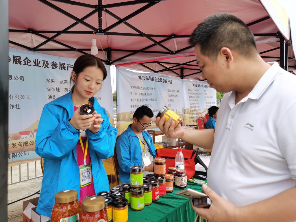 公司推荐的13位志愿者同学,化身常宁市、耒阳市、衡南县、衡阳县、祁东县、衡东县、衡山县以及城区企业的代言人,向参观人群倾力介绍和推荐匠心农产品,常宁市的竹荪、耒阳市的菜籽油、祁东县的糍粑、衡山县的巢蜜、衡东县的黄贡椒、珠晖区的湘黄鸡,还有免费品尝的杀猪粉、好玩的网红桥、独特的民俗表演等,在同学们的精心摆设和推介下,受到热烈欢迎,现场活动十分热闹!