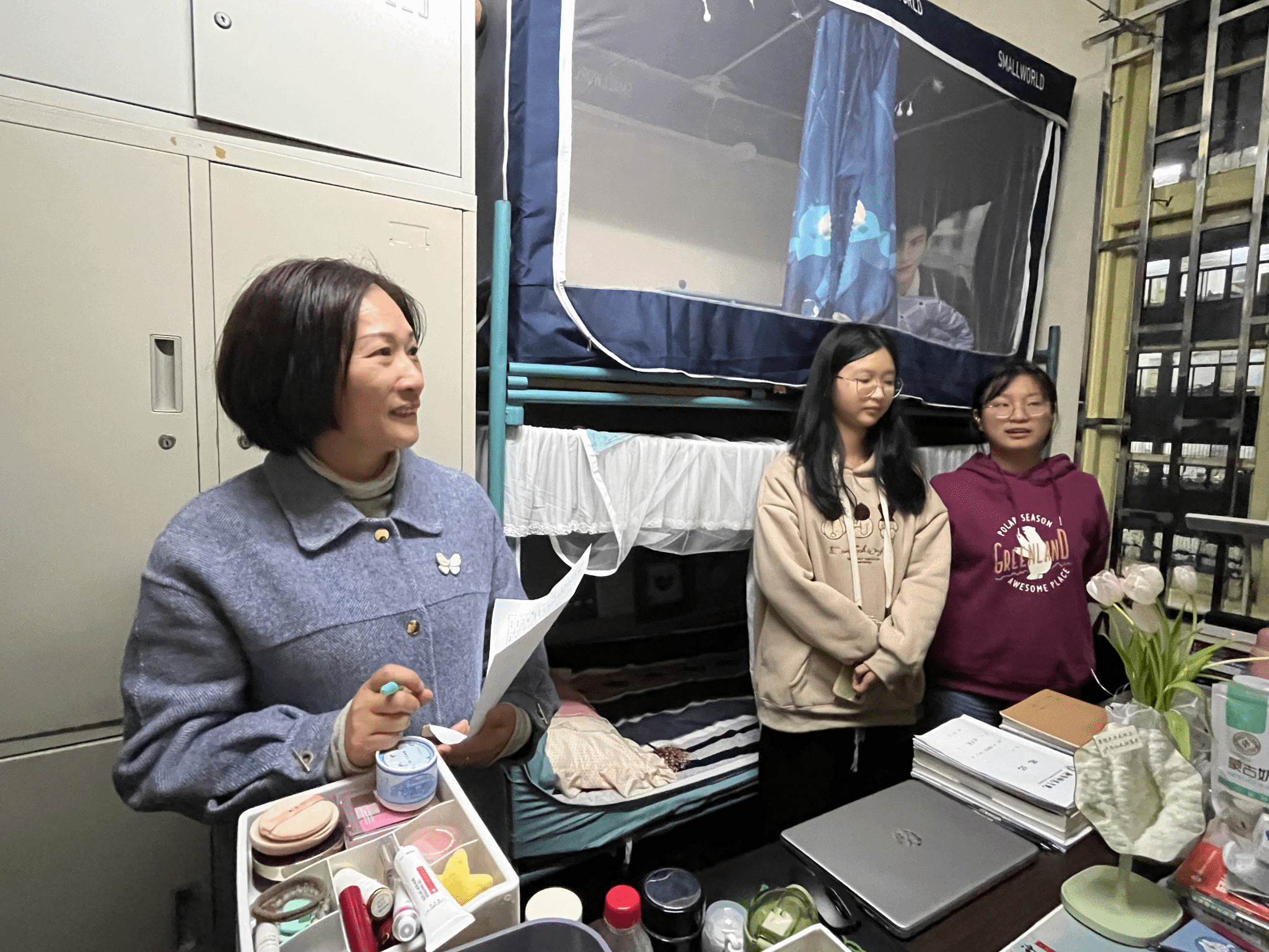 评选过程中所有寝室的内务都十分整洁,也都制作了独一无二的宿舍门牌,派大星造型充满乐趣,让人一下子回到童年,心情愉悦;手工黏土制作的龙猫门牌栩栩如生,周围还点缀了几朵小巧可爱的黄蕊小白花;还有HelloKitty等等许多的卡通人物趣味门牌。一些心灵手巧的同学制作了精美的门帘,有彩虹色渐变的对称门帘,设计感颇强;一连串展翅欲飞蝴蝶造型各异;甚至还有同学们耐心折成的一个个千纸鹤。还有一些宿舍也在墙上贴上了大家喜欢的海报或者是宿舍成员的照片,十分具有纪念意义;有同学用扭扭棒制作了精美的永生花并将自己喜欢的玩偶摆放在桌面上,整个宿舍焕然一新,同学们纷纷表示经过装扮后的宿舍让他们每天都拥有了好心情,在这样的环境中,他们甚至感受到了家的温暖。