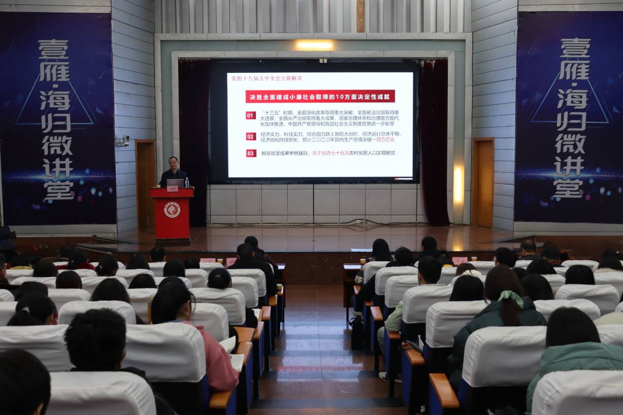 陈董事长从“十九届五中全会公报解读”、“以高质量发展为主题的必要性”、“学校发展面临的机遇与挑战”、“把高质量发展的主题落到实处”四个方面开讲。党课伊始,陈董事长便围绕习近平总书记在党的十九届五中全会上的重要讲话精神,从“一个重要判断”、“决胜全面建成小康社会取得的10个方面决定性成就”、“我国发展环境面临的深刻复杂变化”等多个方面,对党的十九届五中全会精神进行系统讲解和深入解读。