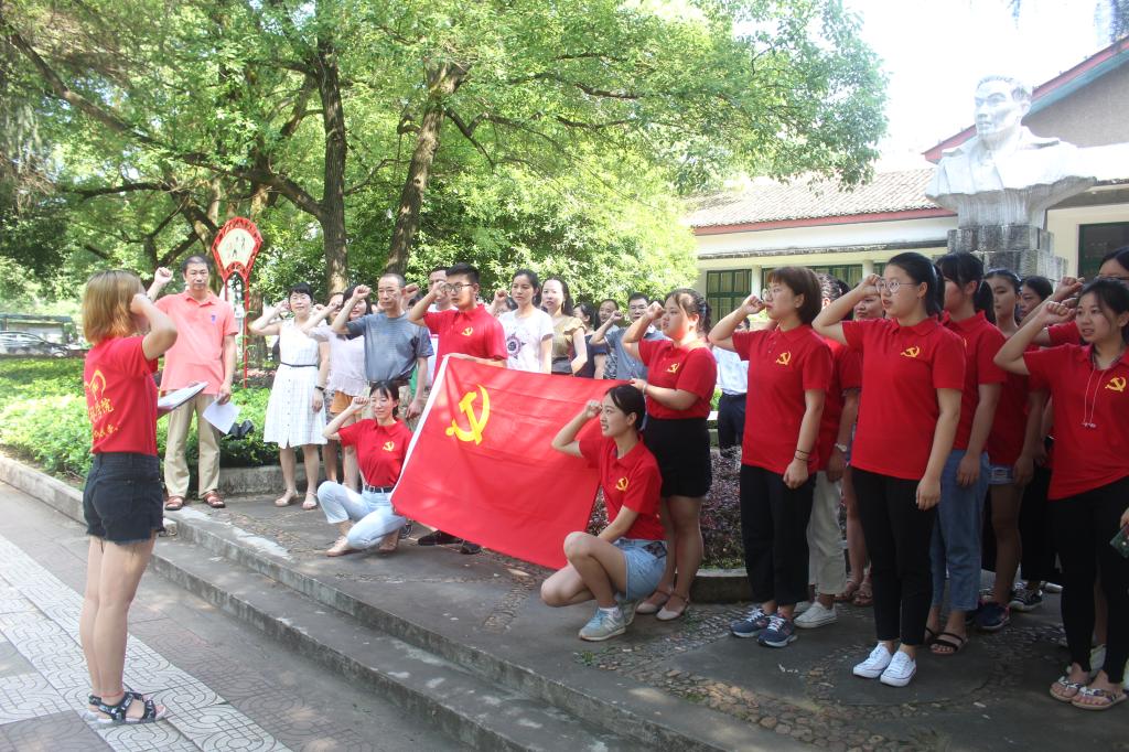 活动伊始,公司员工党支部副书记董琼代表员工党员做志愿服务政策宣讲。她表示,作为党员应该牢记中国共产党的初心和使命,为中华人民谋辛福,为中华民族谋复兴。要牢记习近平主席在纪念五四运动100周年提出的六点要求:树立远大理想,热爱伟大祖国,担当时代责任,勇于砥砺奋斗,练就过硬本领,锤炼品德修为。希望全体党员能争做新时代的追梦人,不辜负党和人民的期望,以实际行动向党的生日献礼。随后,公司员工党支部组织委员蒋超荣带领全体党员在雕像前庄严宣誓,面对党旗,大家右手握拳齐肩,用坚定的声音抒发对党忠诚的决心。