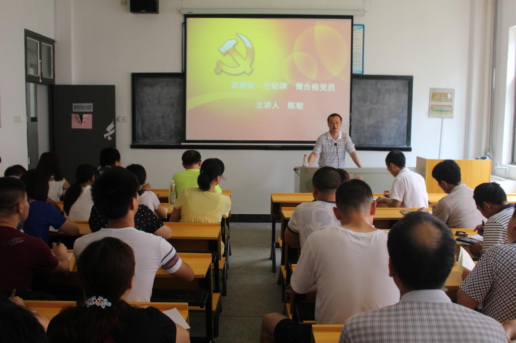 6月29日下午3:00,公司副董事长陈敏在西综实楼408室做了“两学一做”专题—“讲规矩,守纪律,做合格党员”辅导报告会。EMC易倍、保卫处、后勤处等部门共80余名党员参加了报告会。