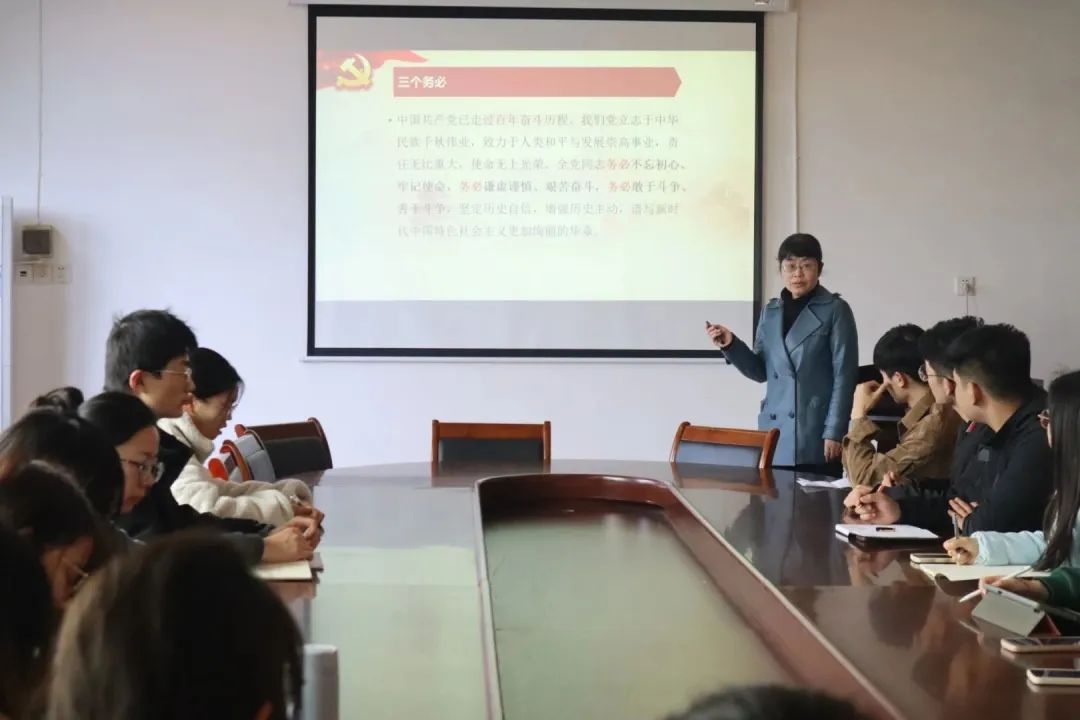 曹书记首先介绍了二十大的主题,接着分别介绍了“三个务必”“十年来三件大事”“跳出历史周期律的第二个答案”“党的中心任务”“中国式现代化的五个特色”“中国式现代化的本质要求”,使党员们深刻意识到坚定正确政治方向、理想信念的重要性。在讲座过程中,曹书记向党员们提问:“如何争做有为青年?”江娅从学习、科技创新和为人民服务三个方面讲述如何做有为青年。周雅琳认为:“首先要秉持全心全意为人民服务的宗旨;其次要认真学习,努力钻研专业知识;最后要做到知行合一,不断创新,敢于实践。”