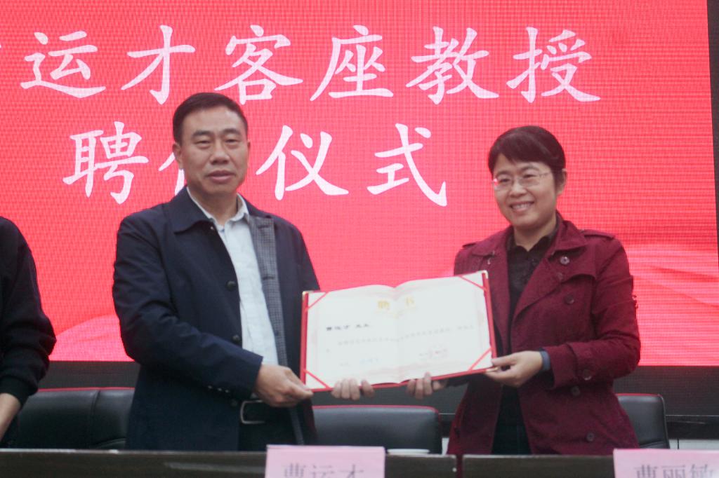 最后,曹经理向曹运才先生颁发了客座教授聘书。近年来,公司不断完善教育管理机制,进一步深化文化育人团队保障建设,相信曹教授的到来将为学院今后内涵发展、团队建设注入新动力、新活力,有助于推动学院教学的高质量发展和科研创新的高水平发展。