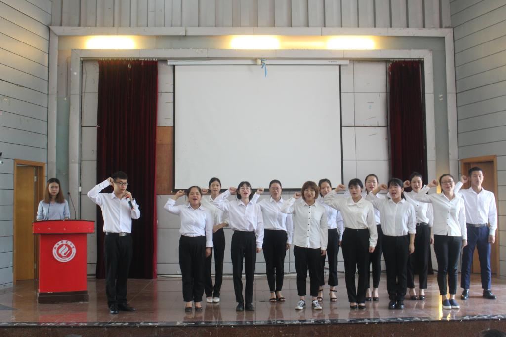 随后,团委书记刘树芬老师宣读第十届团委员工分会优秀员工干部名单及第十一届各部门人员名单。隆重的院旗交接仪式后,新任主席秦永强带领员工会成员庄严宣誓。