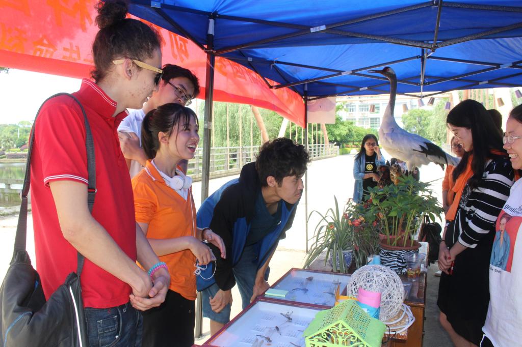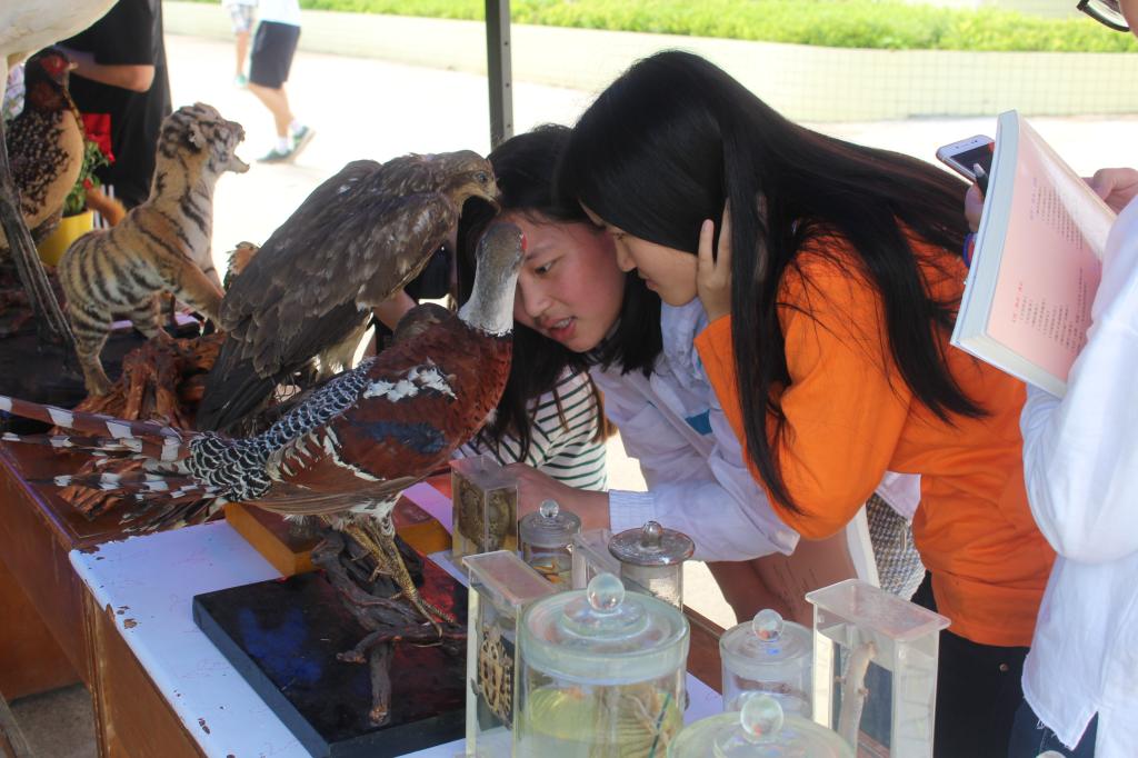 本次活动共展出动植物标本40余件,其中植物标本、动物浸制标本均为公司员工实习期间采集、制作。动物标本区威风凛凛的华南虎、毛发蓬松的黄鼠狼、仙风道骨的丹顶鹤;植物盆栽区可爱的多肉植物、生机勃勃的高茎植物;环保艺术节优秀作品展区陈列的旧木板毛线画,快递盒、废弃墙纸制成的简易书架,铅笔屑粘合而成的跳舞姑娘,都是在员工们的巧手中制作而成。形态各异的动物标本、五花八门的植物标本、环保艺术节脱颖而出的精美艺术品、多姿多彩的植物盆栽,吸引了广大师生驻足观赏。参观之余,现场讲解员详细耐心地讲解各个展品的制作过程和实用价值,使师生更加深入地了解了动植物相关的科普知识,同时也激发了他们制作标本的兴趣。