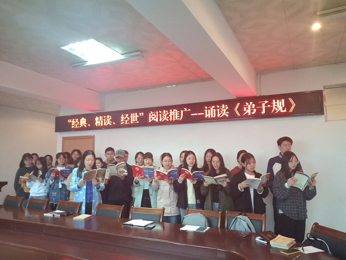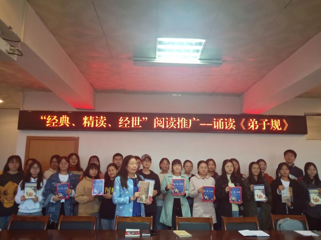 最后,为激发带动同学们的阅读积极性,公司党总支副书记蒋湘祁带领师生共同诵读《弟子规》。同学们个个情感饱满,慷慨昂扬地朗诵,沉浸在经典的国学故事中。师生的热情活力与书籍中的古色古香发生了激烈的碰撞,并巧妙地融合在了一起。在朗朗书声与墨香书韵中,想必同学们对“经典”有了更深刻的了解。