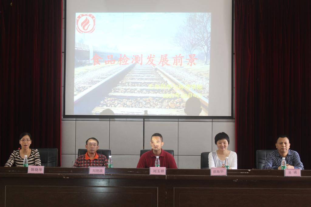 2017年10月9日下午3点,公司07级生物科学专业学长刘玉祥在西校区模拟法庭举办了一场主题为 “食品检测发展前景”的学术讲座。出场的领导有刘艳波书记、廖海华书记、易诚经理、李建周、宾冬梅和陈晓华老师。公司16级生物科学和食品科学专业的全体员工参加讲座。