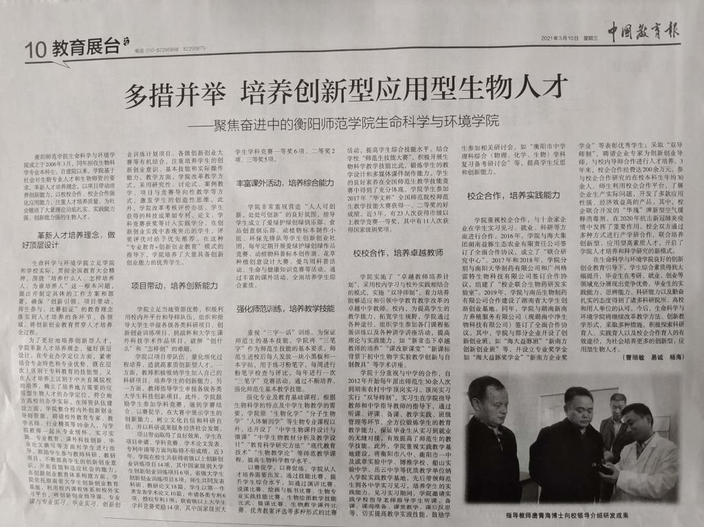 为了更好地培养创新型人才,学院革新人才培养理念,做好顶层设计。在专业办学定位方面,紧密结合专业特色和专业优势,既在层次上区别于专科教育的技能型,又在人才培养上区别于中央直属院校的培养,确立了培养地方需要的应用型生物人才的办学定位,符合地方高校的办学实际。在团队队伍建设方面,学院整合校内外创新创业导团队源,聘请校外教育专家、教学名师、行业精英等10余人,与学院教师一起从专业情怀、实习实践、专业教育、课外科技创新、毕业论文撰写等方面对员工进行指导,鼓励员工参与教师科研、教研项目,不断提高员工的创新创业意识、开拓技能和适应社会的能力。在创新创业教育体系构建方面,学院依托湖南省老员工创新创业教育基地,利用校内课程体系和校外实习平台,将创新创业指导课、专业课与专业实习、毕业实习、创新创业训练计划项目、各级创新创业大赛等有机结合,注重培养员工的创新创业意识、基本技能和实际操作能力。教学方面,学院改革教学方式,采用研究性、讨论式、案例教学、项目与竞赛导向性教学等方式,激发员工的创造性思维。此外,学院改革考核评价办法,员工获得的科技成果如专利、论文、学科竞赛获奖等计入实践学分,在创新创业实践中表现突出的员工,评奖评优时给予优先推荐。在这种“专业教育+创新创业教育”模式的指导下,学院培养了大量具备创新创业能力的优秀员工。