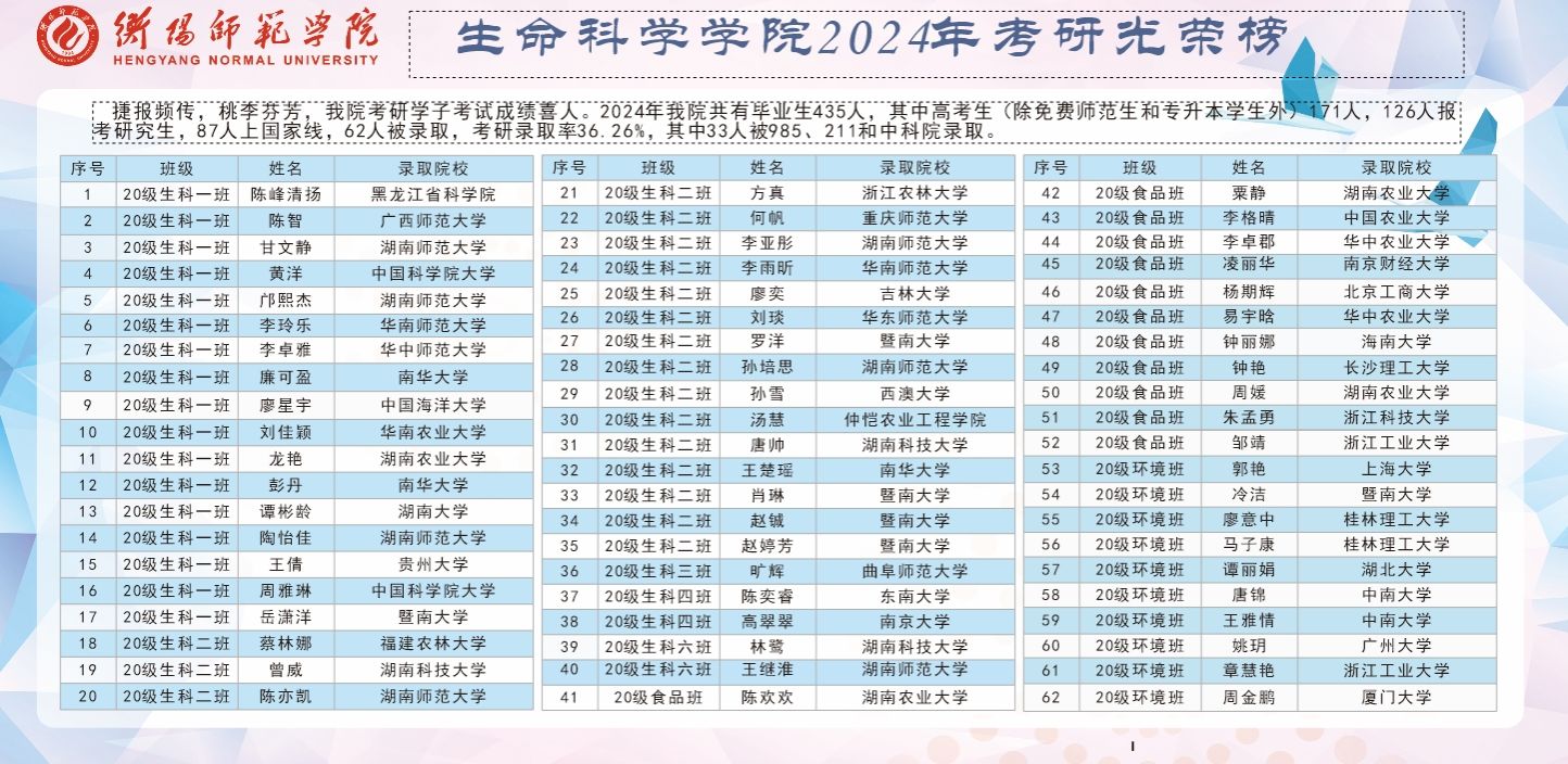 捷报频传,桃李芬芳,公司考研学子考试成绩喜人。2024年公司共有毕业生435人,其中高考生(除公费定向师范生和专升本员工外)171人,126入报考研究生,87人上国家线,62人被录取,考研录取率36.26%,其中33人被985、211和中科院录取。