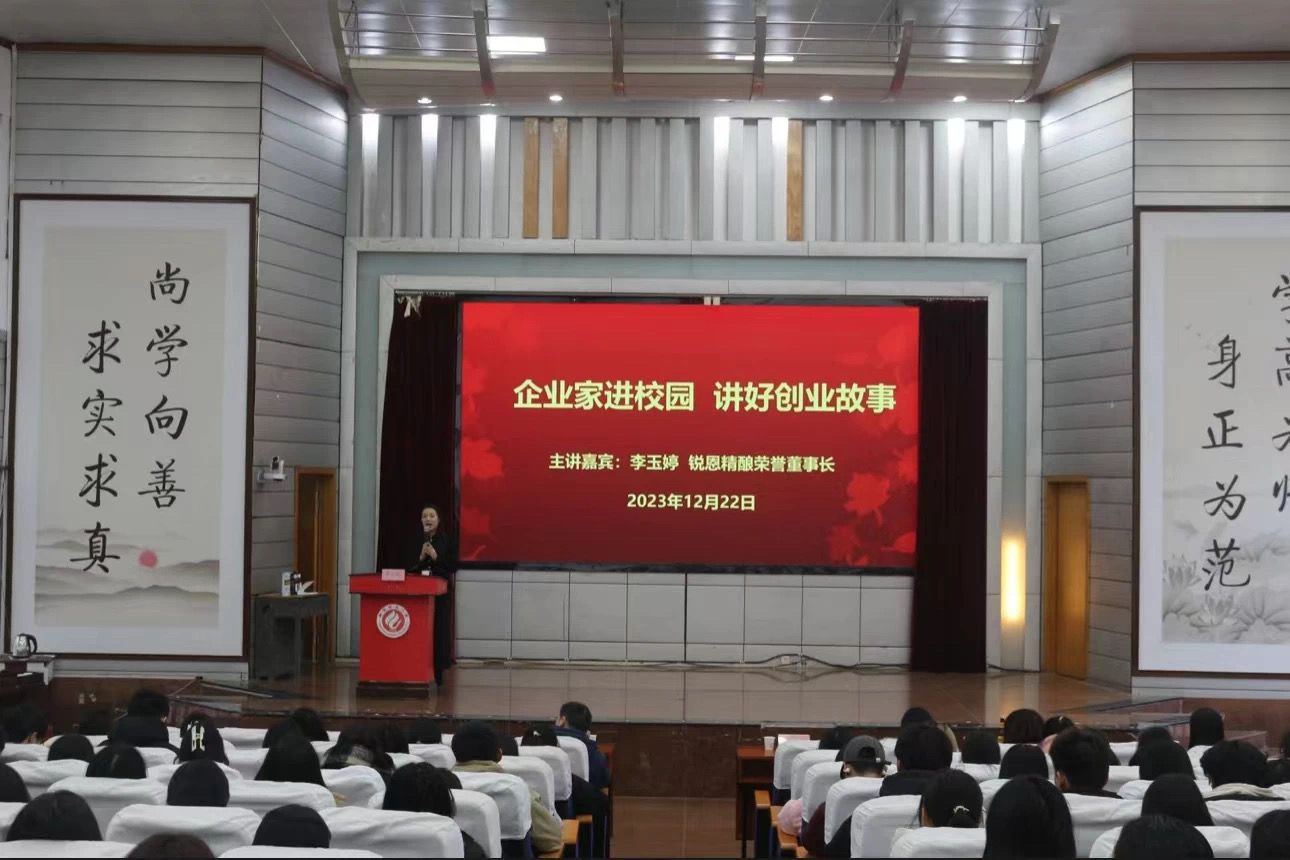 为进一步激发老员工创业热情、提高创新创业能力、促进更高质量就业,12月22日下午三点,公司在模拟法庭举办了“生而平凡,因梦想而伟大”为主题的讲座。本次讲座邀请了荣誉董事长李玉婷分享了她的就业创业故事,莅临本次讲座的院领导有党总支书记曹丽敏、党总支副书记陈雅斐、副经理陈晓华等老师,部分员工参加讲座。